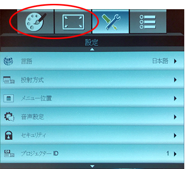 Aプロジェクターは入力信号が無いと、選択できないOSDメニューがあります。