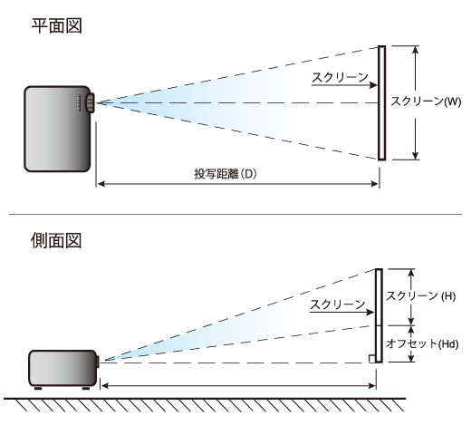 ※投写距離は理論上の値です。実際の距離とは誤差のある場合があります。