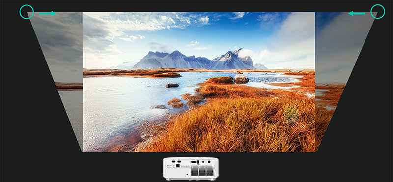 手動キーストン補正±30°(水平、垂直)で、水平や垂直の台形の歪みを調整することができます。