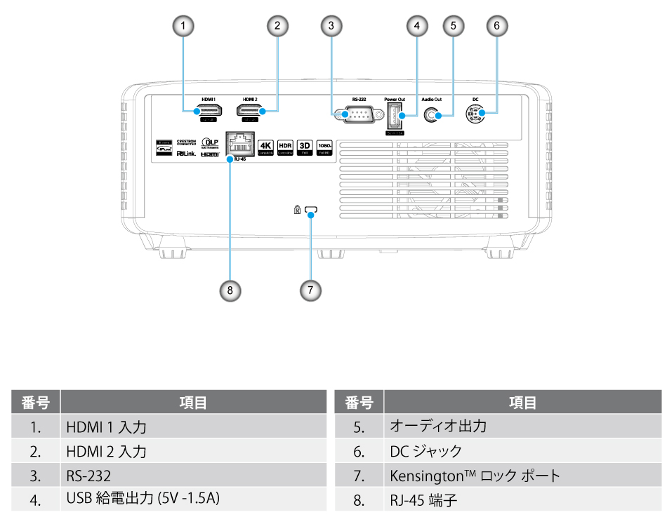 | コントロール端子 | RS-232C×1 、RJ45 ×1 |