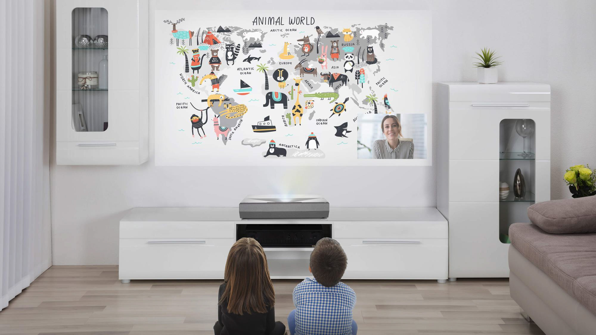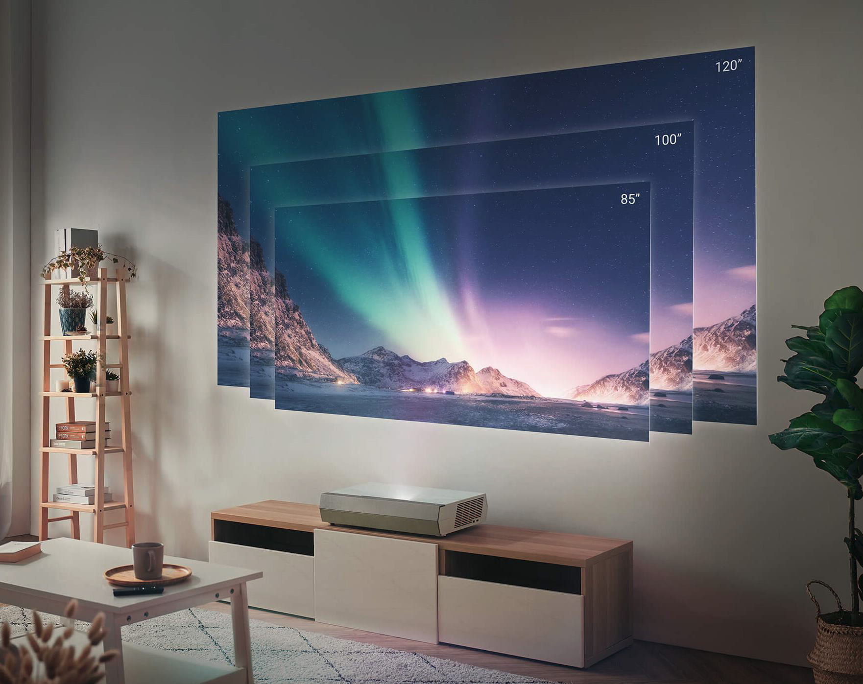 ウルトラショートスローテクノロジーにより壁際に置くだけの簡単設置で、従来のテレビ画面よりも大きく楽しむことができます。