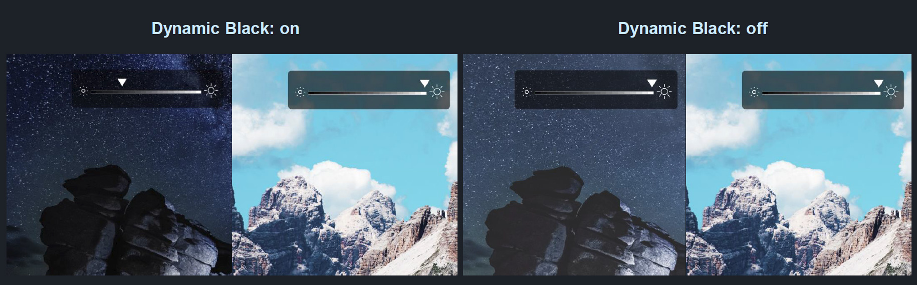 フレーム毎に明暗の情報を検出し、シーンに最適なコントラスト比を出すようランプ出力を調整します。