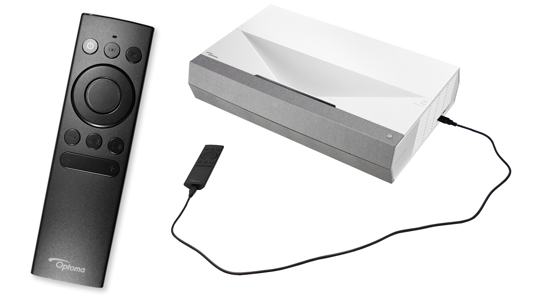 Optoma G1のリモコンは充電式で、付属のUSBケーブルを使って何度でも充電して利用することができ経済的です。