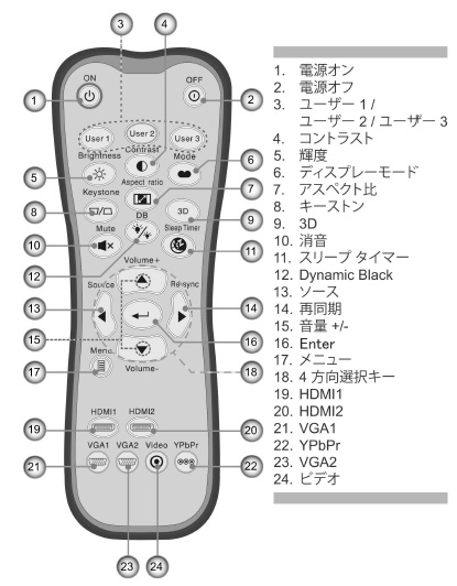 | 付属品 | 電源コード、HDMIケーブル、リモコン、単4電池×2、取扱説明書、保証書、クイックスタートガイド |