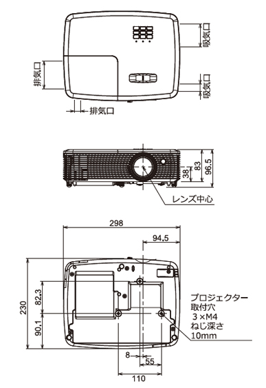 | 投写レンズ | F=2.5~2.67、f=21.86~24mm、1.1倍 |