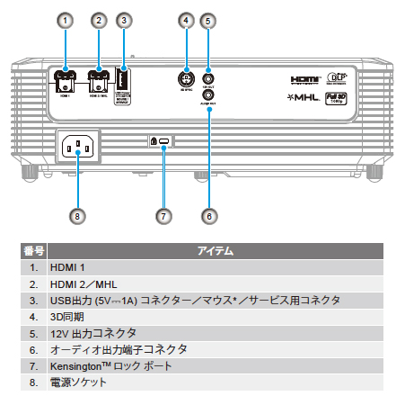 | 入力端子 | HDMI×1、HDMI(MHL)×1 |