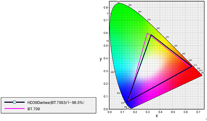 放送業界やBlu-rayなどハイビジョン映像で、色域の標準規格としている「BT.709」の色域を約97%カバーし、豊富な色再現を可能にしました。