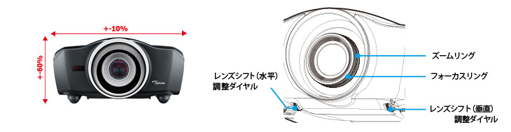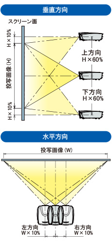 投写距離2705~3390mm、水平方向各221mm、垂直方向各747mmのシフトが可能です。