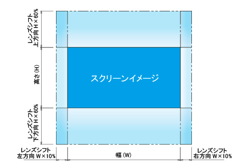 ※レンズシフトニュートラルで投写位置センターはレンズセンターとなります。※投写距離は理論上の値です。実際の距離とは誤差のある場合があります。