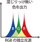 RGB独立光源のLEDはランプ光源と比較して色彩が鮮やかで表現がハッキリ。