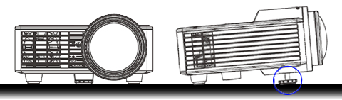 傾斜調整ホイールを回すことで、脚が上下し投写角度の調整ができます。