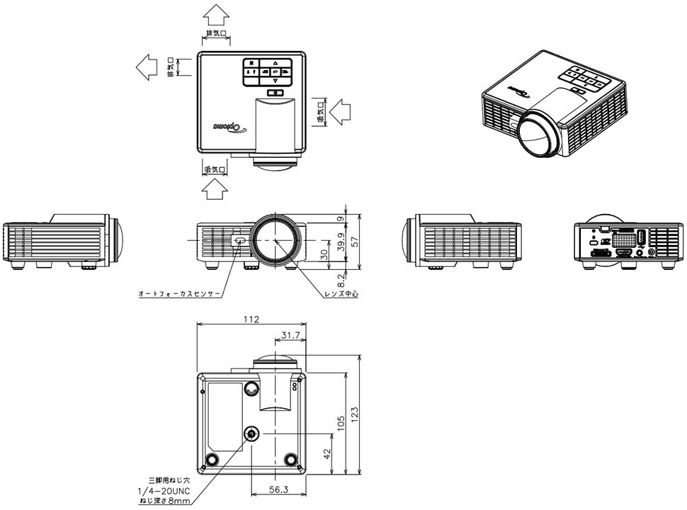 | 投写レンズ | F=1.9、f=8.02mm、ズーム無し |