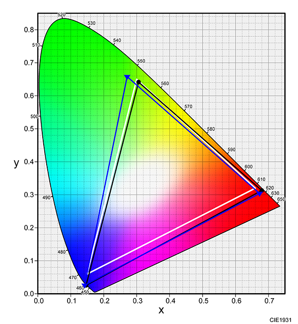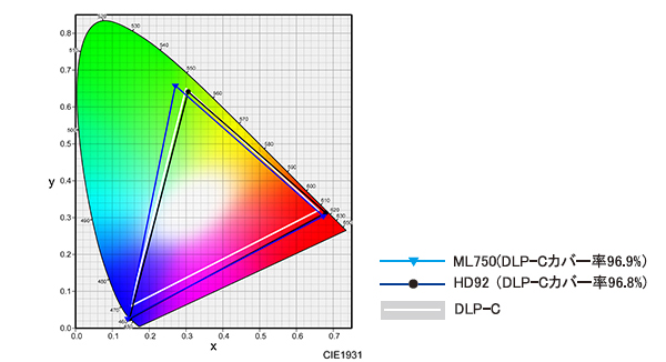 超小型でありながら、上位機種「HD92」に劣らない、LEDならではの色域を実現しています。(色域表の拡大表示