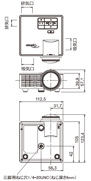 | 投写レンズ | F=1.9、f=8.02mm、ズーム無し |