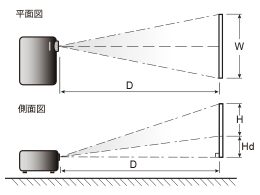 ※投写距離は理論上の値です。実際の距離とは誤差のある場合があります。