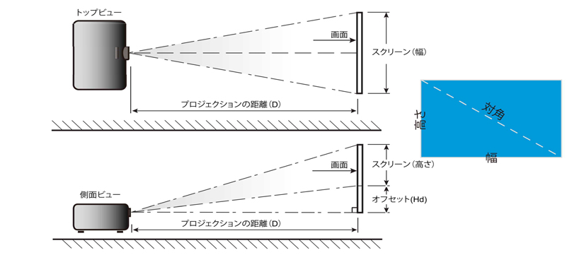 イメージサイズ(W×H)m | 投写距離(D)m | オフセット (Hd)m |