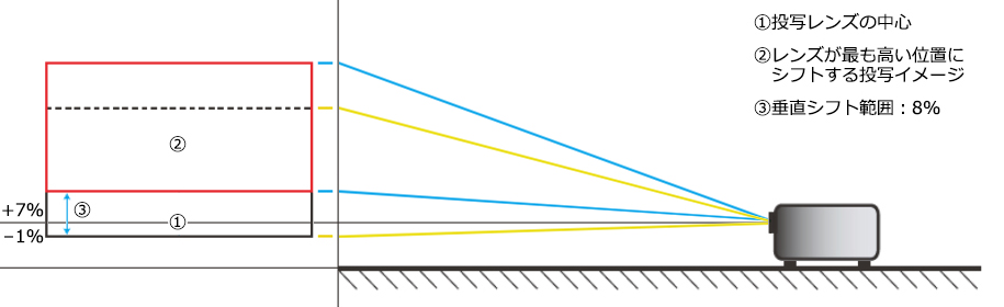 レンズシフト機能で、イメージ位置を上方に8%の角度まで調整することができます。