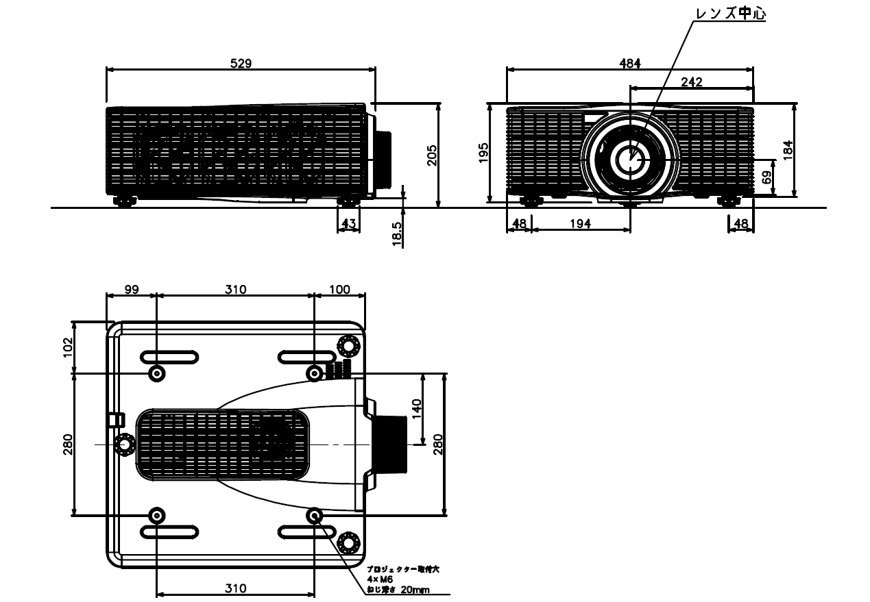 | 投写補正 | 電動式 垂直±8°、水平±3°、4方向ジオメトリック調整 |
