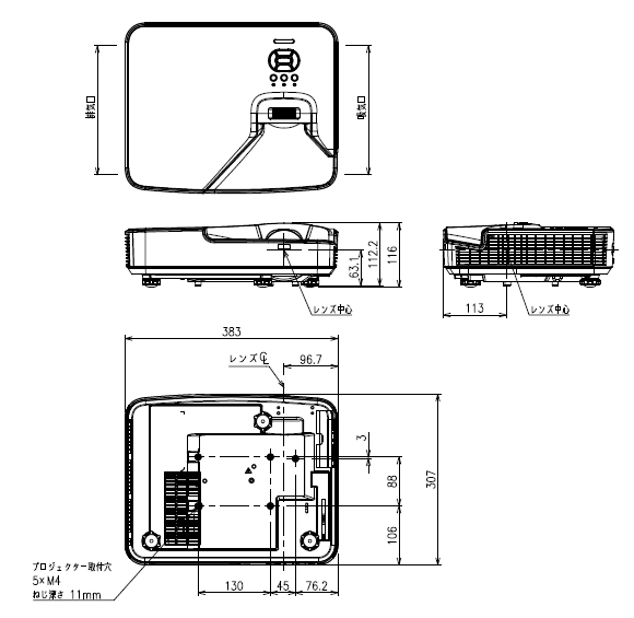 下向き投写〇- 吸排気口